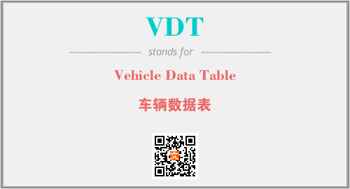 英文缩略词“VDT”经常作为“Vehicle Data Table”的英文缩写来使用,中文表示:“车辆数据表”。本文将详细介绍英文缩写词VDT所代表英文单词,其对应的中文拼音、详细解释以及在英语中的流行度。此外,还有关于缩略词VDT的分类、应用领域及相关应用示例等。