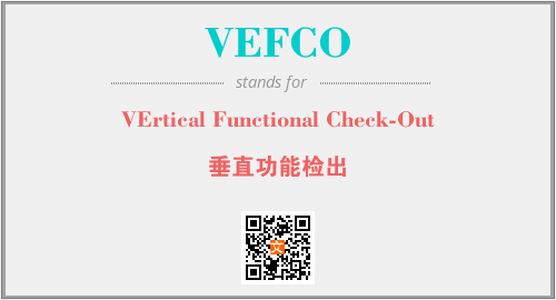 英文缩略词“VEFCO”经常作为“VErtical Functional Check-Out”的英文缩写来使用,中文表示:“垂直功能检出”。本文将详细介绍英文缩写词VEFCO所代表英文单词,其对应的中文拼音、详细解释以及在英语中的流行度。此外,还有关于缩略词VEFCO的分类、应用领域及相关应用示例等。