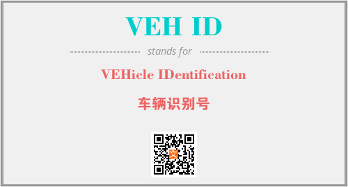 英文缩略词“VEH ID”经常作为“VEHicle IDentification”的英文缩写来使用,中文表示:“车辆识别号”。本文将详细介绍英文缩写词VEH ID所代表英文单词,其对应的中文拼音、详细解释以及在英语中的流行度。此外,还有关于缩略词VEH ID的分类、应用领域及相关应用示例等。