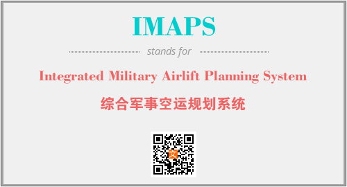 英文缩略词“IMAPS”经常作为“Integrated Military Airlift Planning System”的英文缩写来使用,中文表示:“综合军事空运规划系统”。本文将详细介绍英文缩写词IMAPS所代表英文单词,其对应的中文拼音、详细解释以及在英语中的流行度。此外,还有关于缩略词IMAPS的分类、应用领域及相关应用示例等。