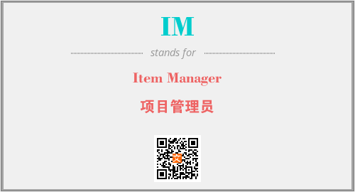 上述内容是“Item Manager”作为“IM”的缩写,解释为“项目管理员”时的信息,以及英文缩略词IM所代表的英文单词,其对应的中文拼音、详细解释以及在英文中的流行度和相关分类、应用领域及应用示例等。