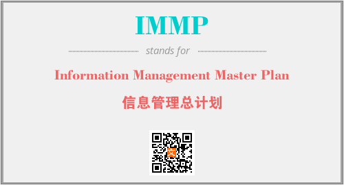 英文缩略词“IMMP”经常作为“Information Management Master Plan”的英文缩写来使用,中文表示:“信息管理总计划”。本文将详细介绍英文缩写词IMMP所代表英文单词,其对应的中文拼音、详细解释以及在英语中的流行度。此外,还有关于缩略词IMMP的分类、应用领域及相关应用示例等。