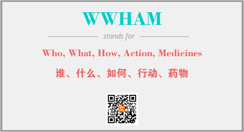 上述内容是“Who, What, How, Action, Medicines”作为“WWHAM”的缩写,解释为“谁、什么、如何、行动、药物”时的信息,以及英文缩略词WWHAM所代表的英文单词,其对应的中文拼音、详细解释以及在英文中的流行度和相关分类、应用领域及应用示例等。