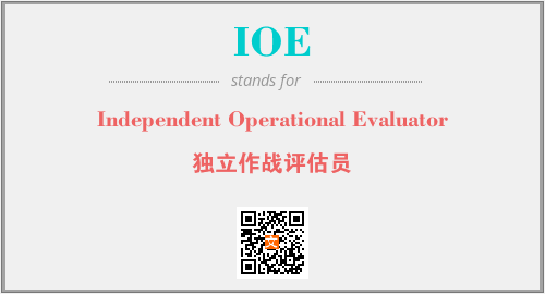 英文缩略词“IOE”经常作为“Independent Operational Evaluator”的英文缩写来使用,中文表示:“独立作战评估员”。本文将详细介绍英文缩写词IOE所代表英文单词,其对应的中文拼音、详细解释以及在英语中的流行度。此外,还有关于缩略词IOE的分类、应用领域及相关应用示例等。
