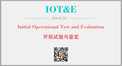 英文缩略词“IOT&E”经常作为“Initial Operational Test and Evaluation”的英文缩写来使用,中文表示:“开机试验与鉴定”。本文将详细介绍英文缩写词IOT&E所代表英文单词,其对应的中文拼音、详细解释以及在英语中的流行度。此外,还有关于缩略词IOT&E的分类、应用领域及相关应用示例等。