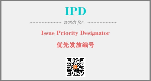 英文缩略词“IPD”经常作为“Issue Priority Designator”的英文缩写来使用,中文表示:“优先发放编号”。本文将详细介绍英文缩写词IPD所代表英文单词,其对应的中文拼音、详细解释以及在英语中的流行度。此外,还有关于缩略词IPD的分类、应用领域及相关应用示例等。