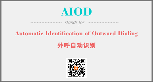 英文缩略词“AIOD”经常作为“Automatic Identification of Outward Dialing”的英文缩写来使用,中文表示:“外呼自动识别”。本文将详细介绍英文缩写词AIOD所代表英文单词,其对应的中文拼音、详细解释以及在英语中的流行度。此外,还有关于缩略词AIOD的分类、应用领域及相关应用示例等。