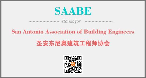 上述内容是“San Antonio Association of Building Engineers”作为“SAABE”的缩写,解释为“圣安东尼奥建筑工程师协会”时的信息,以及英文缩略词SAABE所代表的英文单词,其对应的中文拼音、详细解释以及在英文中的流行度和相关分类、应用领域及应用示例等。