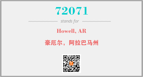 上述内容是“Howell, AR”作为“72071”的缩写,解释为“豪厄尔,阿拉巴马州”时的信息,以及英文缩略词72071所代表的英文单词,其对应的中文拼音、详细解释以及在英文中的流行度和相关分类、应用领域及应用示例等。
