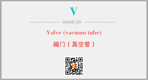 英文缩略词“V”经常作为“Valve (vacuum tube)”的英文缩写来使用,中文表示:“阀门(真空管)”。本文将详细介绍英文缩写词V所代表英文单词,其对应的中文拼音、详细解释以及在英语中的流行度。此外,还有关于缩略词V的分类、应用领域及相关应用示例等。