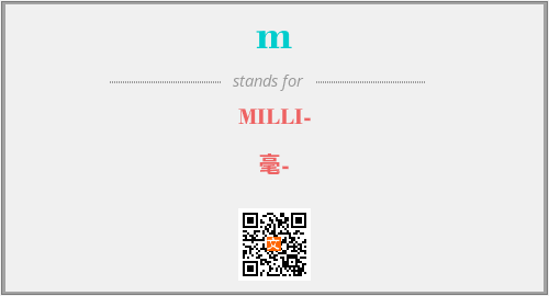 上述内容是“MILLI-”作为“m”的缩写,解释为“毫-”时的信息,以及英文缩略词m所代表的英文单词,其对应的中文拼音、详细解释以及在英文中的流行度和相关分类、应用领域及应用示例等。