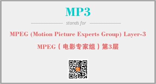 以上为MPEG (Motion Picture Experts Group) Layer-3英文缩略词MP3的中文解释,以及该英文缩写在英语的流行度、分类和应用领域方面的信息。