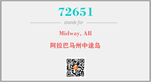上述内容是“Midway, AR”作为“72651”的缩写,解释为“阿拉巴马州中途岛”时的信息,以及英文缩略词72651所代表的英文单词,其对应的中文拼音、详细解释以及在英文中的流行度和相关分类、应用领域及应用示例等。