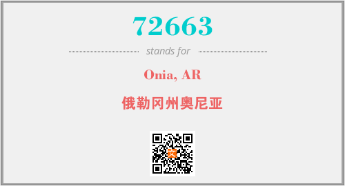上述内容是“Onia, AR”作为“72663”的缩写,解释为“俄勒冈州奥尼亚”时的信息,以及英文缩略词72663所代表的英文单词,其对应的中文拼音、详细解释以及在英文中的流行度和相关分类、应用领域及应用示例等。