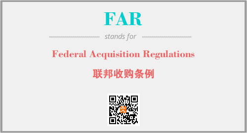英文缩略词“FAR”经常作为“Federal Acquisition Regulations”的英文缩写来使用,中文表示:“联邦收购条例”。本文将详细介绍英文缩写词FAR所代表英文单词,其对应的中文拼音、详细解释以及在英语中的流行度。此外,还有关于缩略词FAR的分类、应用领域及相关应用示例等。