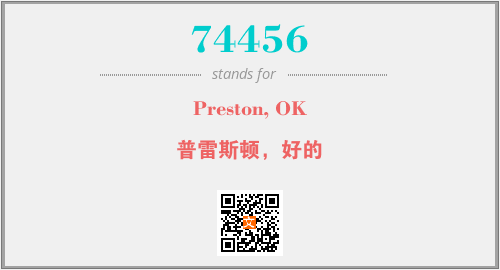 上述内容是“Preston, OK”作为“74456”的缩写,解释为“普雷斯顿,好的”时的信息,以及英文缩略词74456所代表的英文单词,其对应的中文拼音、详细解释以及在英文中的流行度和相关分类、应用领域及应用示例等。
