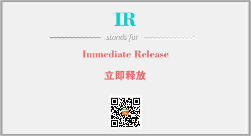 以上为Immediate Release英文缩略词IR的中文解释,以及该英文缩写在英语的流行度、分类和应用领域方面的信息。