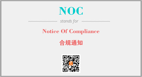上述内容是“Notice Of Compliance”作为“NOC”的缩写,解释为“合规通知”时的信息,以及英文缩略词NOC所代表的英文单词,其对应的中文拼音、详细解释以及在英文中的流行度和相关分类、应用领域及应用示例等。