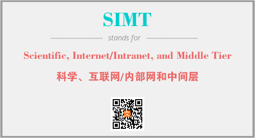 上述内容是“Scientific, Internet/Intranet, and Middle Tier”作为“SIMT”的缩写,解释为“科学、互联网/内部网和中间层”时的信息,以及英文缩略词SIMT所代表的英文单词,其对应的中文拼音、详细解释以及在英文中的流行度和相关分类、应用领域及应用示例等。