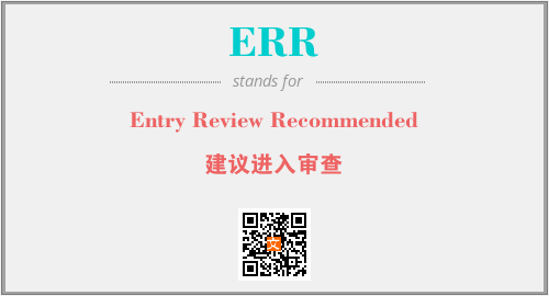 上述内容是“Entry Review Recommended”作为“ERR”的缩写,解释为“建议进入审查”时的信息,以及英文缩略词ERR所代表的英文单词,其对应的中文拼音、详细解释以及在英文中的流行度和相关分类、应用领域及应用示例等。
