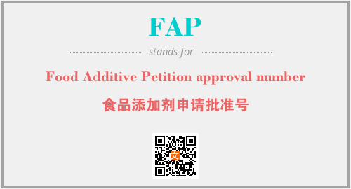 上述内容是“Food Additive Petition approval number”作为“FAP”的缩写,解释为“食品添加剂申请批准号”时的信息,以及英文缩略词FAP所代表的英文单词,其对应的中文拼音、详细解释以及在英文中的流行度和相关分类、应用领域及应用示例等。