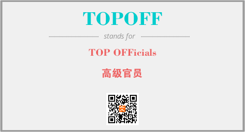 英文缩略词“TOPOFF”经常作为“TOP OFFicials”的英文缩写来使用,中文表示:“高级官员”。本文将详细介绍英文缩写词TOPOFF所代表英文单词,其对应的中文拼音、详细解释以及在英语中的流行度。此外,还有关于缩略词TOPOFF的分类、应用领域及相关应用示例等。