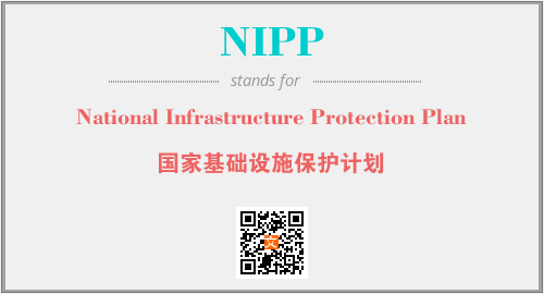 上述内容是“National Infrastructure Protection Plan”作为“NIPP”的缩写,解释为“国家基础设施保护计划”时的信息,以及英文缩略词NIPP所代表的英文单词,其对应的中文拼音、详细解释以及在英文中的流行度和相关分类、应用领域及应用示例等。