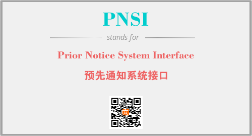 上述内容是“Prior Notice System Interface”作为“PNSI”的缩写,解释为“预先通知系统接口”时的信息,以及英文缩略词PNSI所代表的英文单词,其对应的中文拼音、详细解释以及在英文中的流行度和相关分类、应用领域及应用示例等。