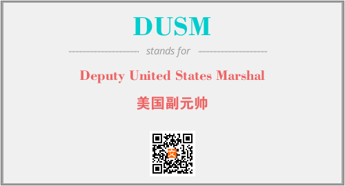 英文缩略词“DUSM”经常作为“Deputy United States Marshal”的英文缩写来使用,中文表示:“美国副元帅”。本文将详细介绍英文缩写词DUSM所代表英文单词,其对应的中文拼音、详细解释以及在英语中的流行度。此外,还有关于缩略词DUSM的分类、应用领域及相关应用示例等。