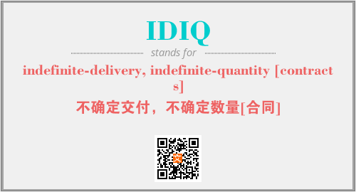 上述内容是“indefinite-delivery, indefinite-quantity [contracts]”作为“IDIQ”的缩写,解释为“不确定交付,不确定数量[合同]”时的信息,以及英文缩略词IDIQ所代表的英文单词,其对应的中文拼音、详细解释以及在英文中的流行度和相关分类、应用领域及应用示例等。