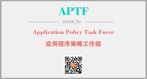 上述内容是“Application Policy Task Force”作为“APTF”的缩写,解释为“应用程序策略工作组”时的信息,以及英文缩略词APTF所代表的英文单词,其对应的中文拼音、详细解释以及在英文中的流行度和相关分类、应用领域及应用示例等。