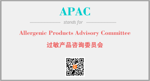 上述内容是“Allergenic Products Advisory Committee”作为“APAC”的缩写,解释为“过敏产品咨询委员会”时的信息,以及英文缩略词APAC所代表的英文单词,其对应的中文拼音、详细解释以及在英文中的流行度和相关分类、应用领域及应用示例等。