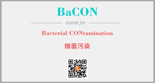 英文缩略词“BaCON”经常作为“Bacterial CONtamination”的英文缩写来使用,中文表示:“细菌污染”。本文将详细介绍英文缩写词BaCON所代表英文单词,其对应的中文拼音、详细解释以及在英语中的流行度。此外,还有关于缩略词BaCON的分类、应用领域及相关应用示例等。