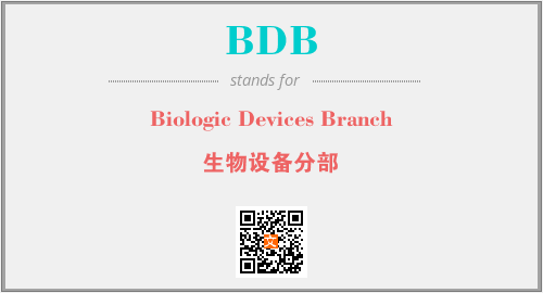 上述内容是“Biologic Devices Branch”作为“BDB”的缩写,解释为“生物设备分部”时的信息,以及英文缩略词BDB所代表的英文单词,其对应的中文拼音、详细解释以及在英文中的流行度和相关分类、应用领域及应用示例等。