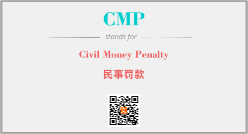上述内容是“Civil Money Penalty”作为“CMP”的缩写,解释为“民事罚款”时的信息,以及英文缩略词CMP所代表的英文单词,其对应的中文拼音、详细解释以及在英文中的流行度和相关分类、应用领域及应用示例等。