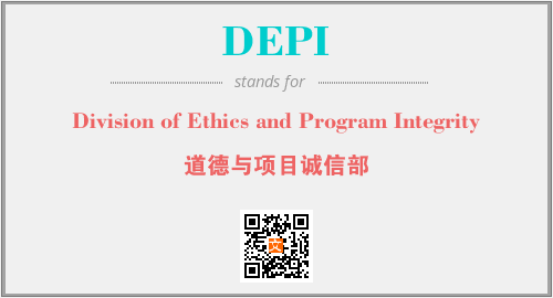 上述内容是“Division of Ethics and Program Integrity”作为“DEPI”的缩写,解释为“道德与项目诚信部”时的信息,以及英文缩略词DEPI所代表的英文单词,其对应的中文拼音、详细解释以及在英文中的流行度和相关分类、应用领域及应用示例等。
