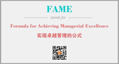 上述内容是“Formula for Achieving Managerial Excellence”作为“FAME”的缩写,解释为“实现卓越管理的公式”时的信息,以及英文缩略词FAME所代表的英文单词,其对应的中文拼音、详细解释以及在英文中的流行度和相关分类、应用领域及应用示例等。