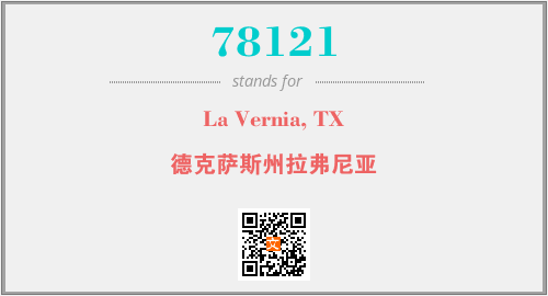 上述内容是“La Vernia, TX”作为“78121”的缩写,解释为“德克萨斯州拉弗尼亚”时的信息,以及英文缩略词78121所代表的英文单词,其对应的中文拼音、详细解释以及在英文中的流行度和相关分类、应用领域及应用示例等。