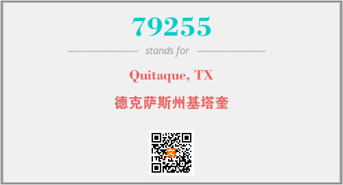 上述内容是“Quitaque, TX”作为“79255”的缩写,解释为“德克萨斯州基塔奎”时的信息,以及英文缩略词79255所代表的英文单词,其对应的中文拼音、详细解释以及在英文中的流行度和相关分类、应用领域及应用示例等。