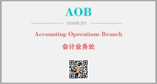 上述内容是“Accounting Operations Branch”作为“AOB”的缩写,解释为“会计业务处”时的信息,以及英文缩略词AOB所代表的英文单词,其对应的中文拼音、详细解释以及在英文中的流行度和相关分类、应用领域及应用示例等。