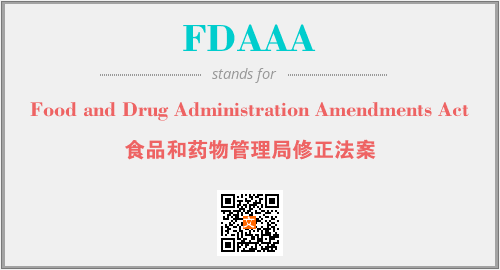 英文缩略词“FDAAA”经常作为“Food and Drug Administration Amendments Act”的英文缩写来使用,中文表示:“食品和药物管理局修正法案”。本文将详细介绍英文缩写词FDAAA所代表英文单词,其对应的中文拼音、详细解释以及在英语中的流行度。此外,还有关于缩略词FDAAA的分类、应用领域及相关应用示例等。