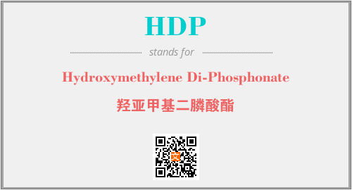 上述内容是“Hydroxymethylene Di-Phosphonate”作为“HDP”的缩写,解释为“羟亚甲基二膦酸酯”时的信息,以及英文缩略词HDP所代表的英文单词,其对应的中文拼音、详细解释以及在英文中的流行度和相关分类、应用领域及应用示例等。