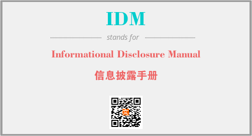 英文缩略词“IDM”经常作为“Informational Disclosure Manual”的英文缩写来使用,中文表示:“信息披露手册”。本文将详细介绍英文缩写词IDM所代表英文单词,其对应的中文拼音、详细解释以及在英语中的流行度。此外,还有关于缩略词IDM的分类、应用领域及相关应用示例等。