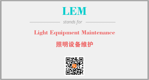 上述内容是“Light Equipment Maintenance”作为“LEM”的缩写,解释为“照明设备维护”时的信息,以及英文缩略词LEM所代表的英文单词,其对应的中文拼音、详细解释以及在英文中的流行度和相关分类、应用领域及应用示例等。