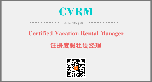 英文缩略词“CVRM”经常作为“Certified Vacation Rental Manager”的英文缩写来使用,中文表示:“注册度假租赁经理”。本文将详细介绍英文缩写词CVRM所代表英文单词,其对应的中文拼音、详细解释以及在英语中的流行度。此外,还有关于缩略词CVRM的分类、应用领域及相关应用示例等。