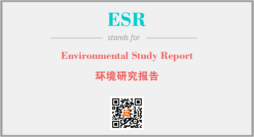 上述内容是“Environmental Study Report”作为“ESR”的缩写,解释为“环境研究报告”时的信息,以及英文缩略词ESR所代表的英文单词,其对应的中文拼音、详细解释以及在英文中的流行度和相关分类、应用领域及应用示例等。