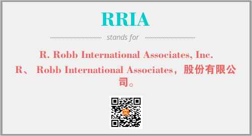 上述内容是“R. Robb International Associates, Inc.”作为“RRIA”的缩写,解释为“R、 Robb International Associates,股份有限公司。”时的信息,以及英文缩略词RRIA所代表的英文单词,其对应的中文拼音、详细解释以及在英文中的流行度和相关分类、应用领域及应用示例等。