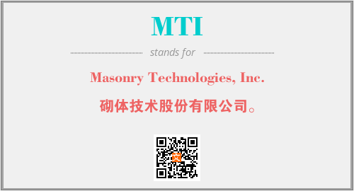 上述内容是“Masonry Technologies, Inc.”作为“MTI”的缩写,解释为“砌体技术股份有限公司。”时的信息,以及英文缩略词MTI所代表的英文单词,其对应的中文拼音、详细解释以及在英文中的流行度和相关分类、应用领域及应用示例等。