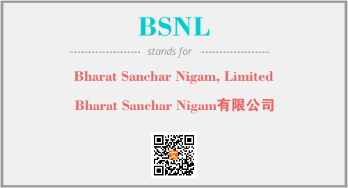 英文缩略词“BSNL”经常作为“Bharat Sanchar Nigam, Limited”的英文缩写来使用,中文表示:“Bharat Sanchar Nigam有限公司”。本文将详细介绍英文缩写词BSNL所代表英文单词,其对应的中文拼音、详细解释以及在英语中的流行度。此外,还有关于缩略词BSNL的分类、应用领域及相关应用示例等。