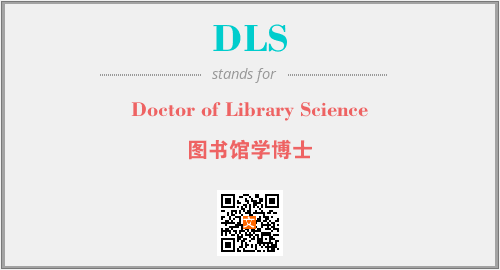 英文缩略词“DLS”经常作为“Doctor of Library Science”的英文缩写来使用,中文表示:“图书馆学博士”。本文将详细介绍英文缩写词DLS所代表英文单词,其对应的中文拼音、详细解释以及在英语中的流行度。此外,还有关于缩略词DLS的分类、应用领域及相关应用示例等。